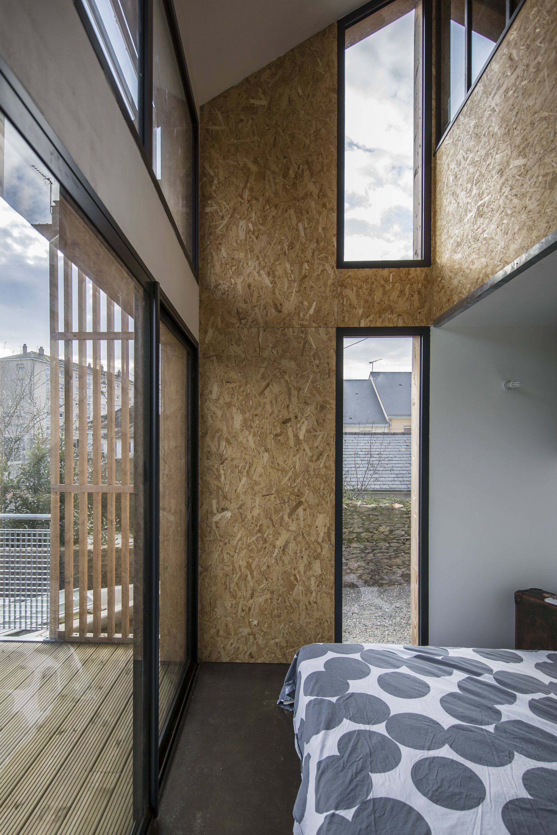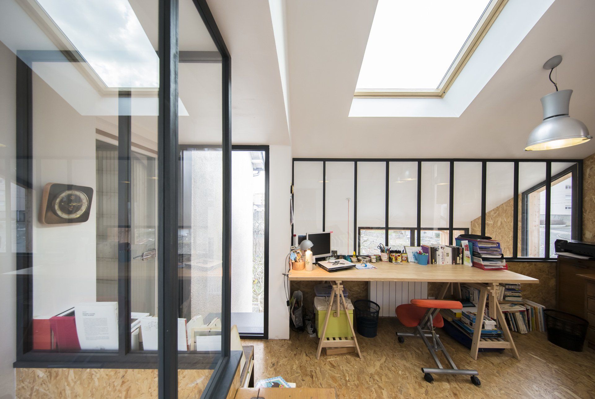 : Chape auto-nivellante recouverte de résine incolore et OSB laissé apparent à l'étage