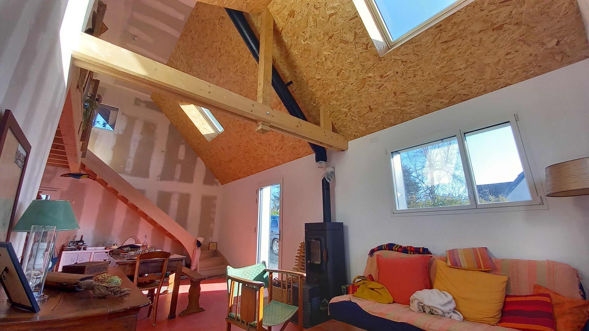brique et charpente bois. Plancher bois