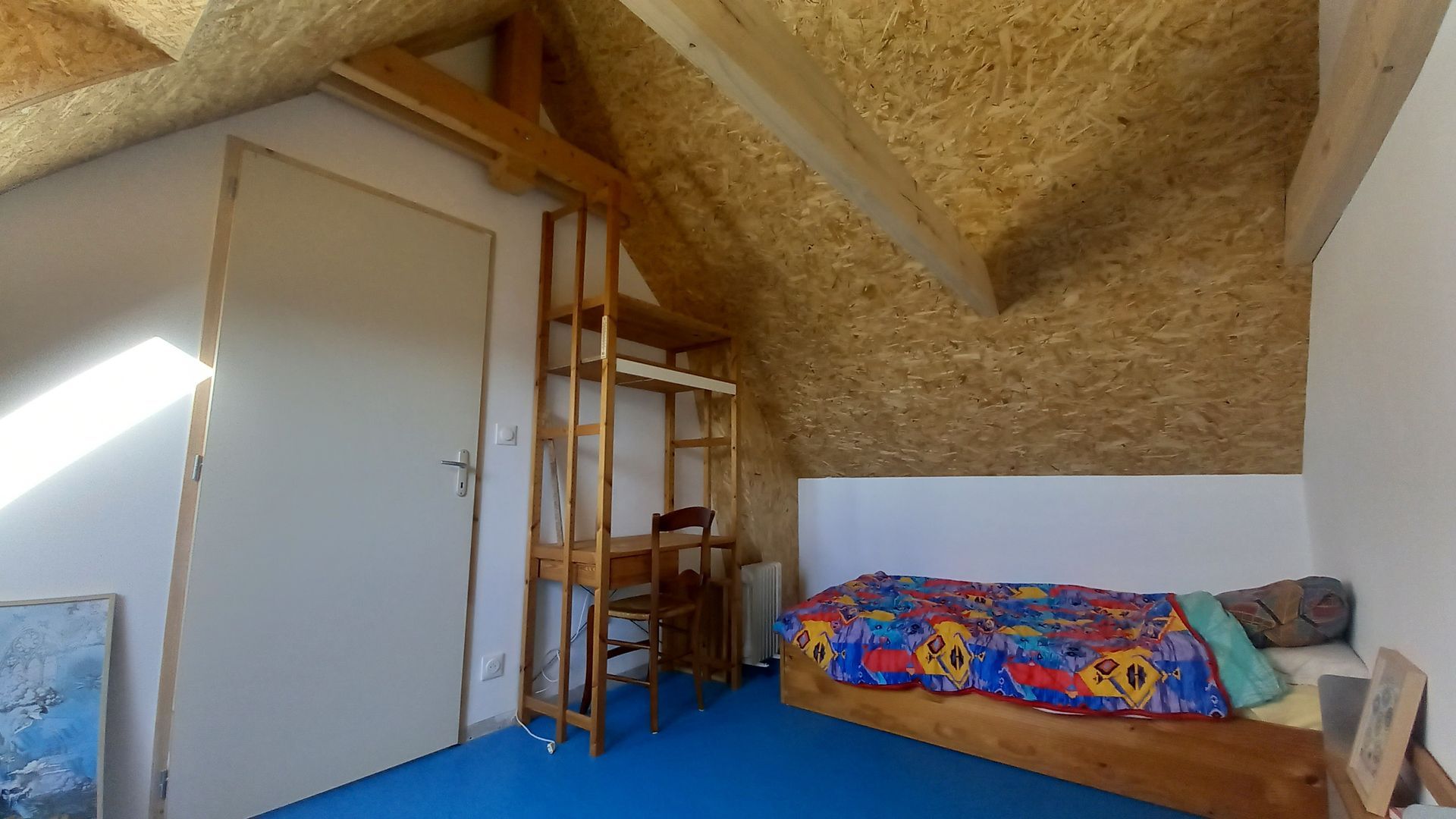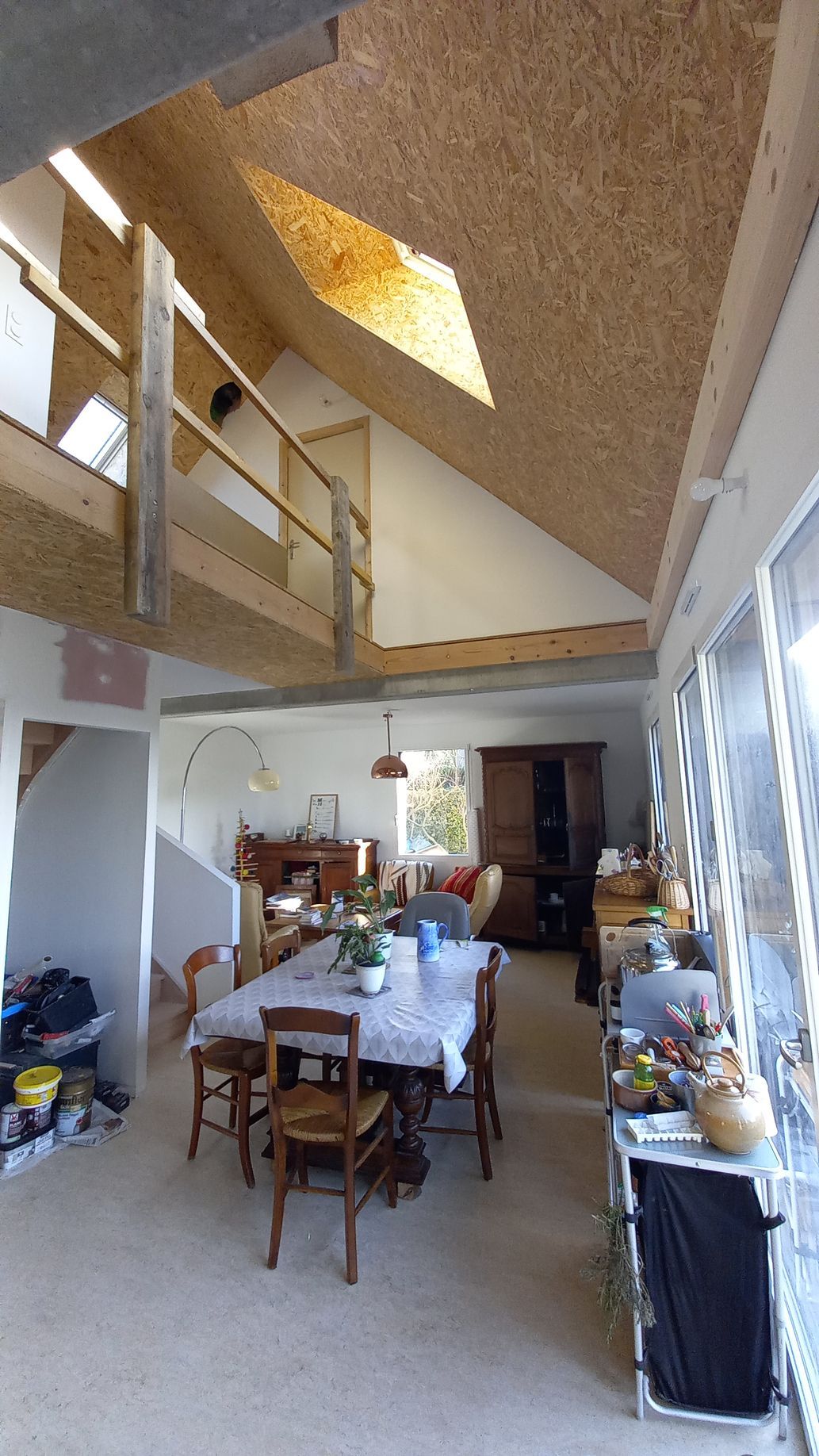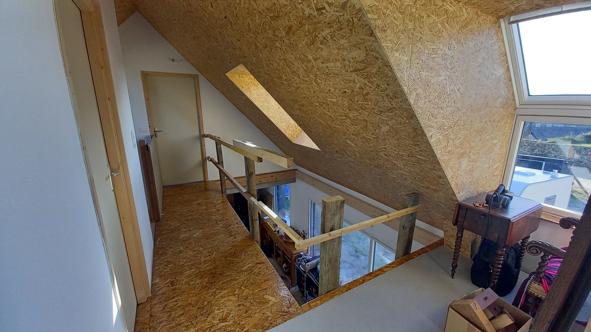 Structure : parpaing et charpente bois. Plancher béton et passerelle en bois