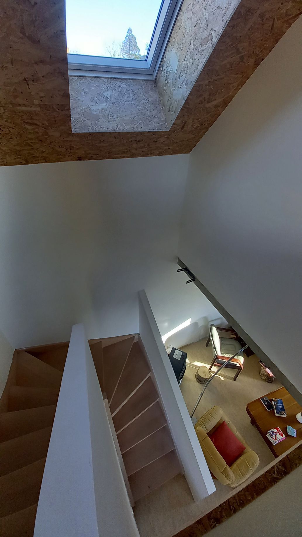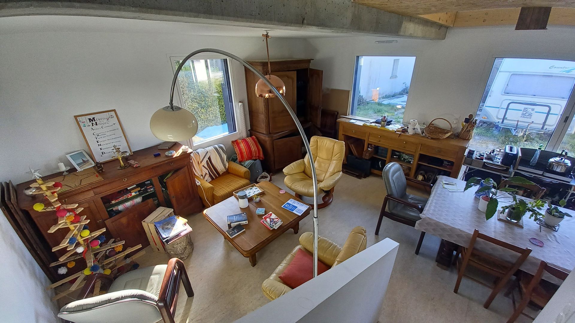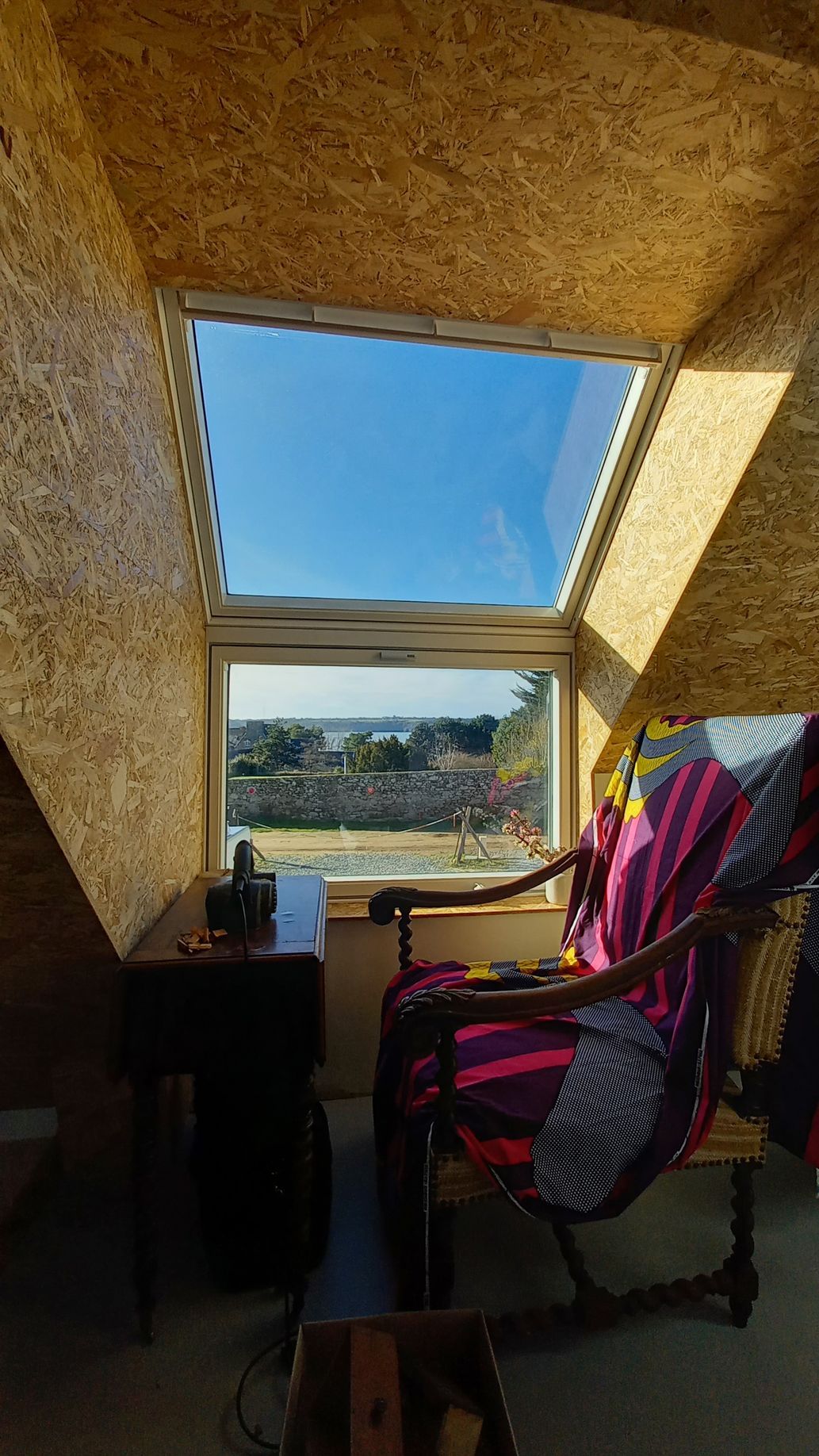 Structure : parpaing et charpente bois. Plancher béton et passerelle en bois