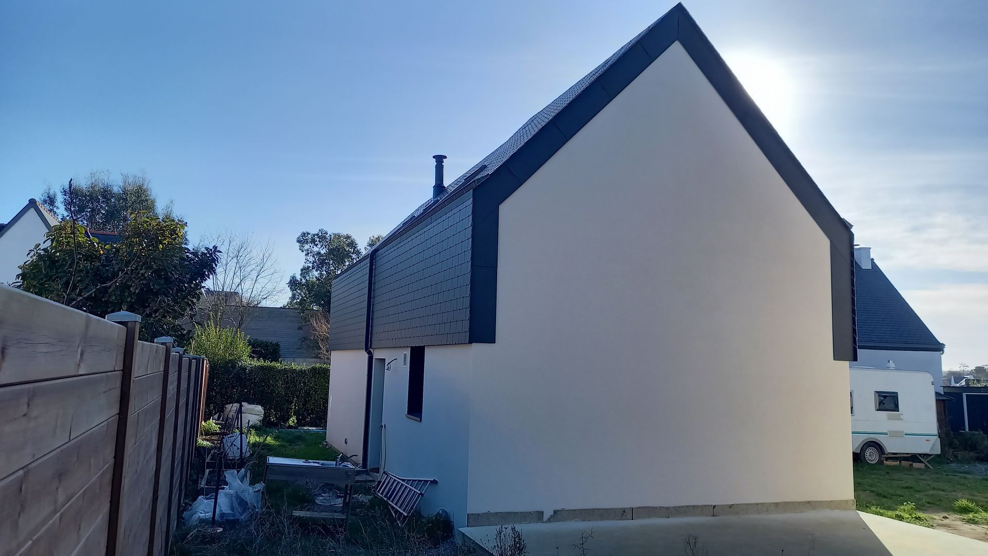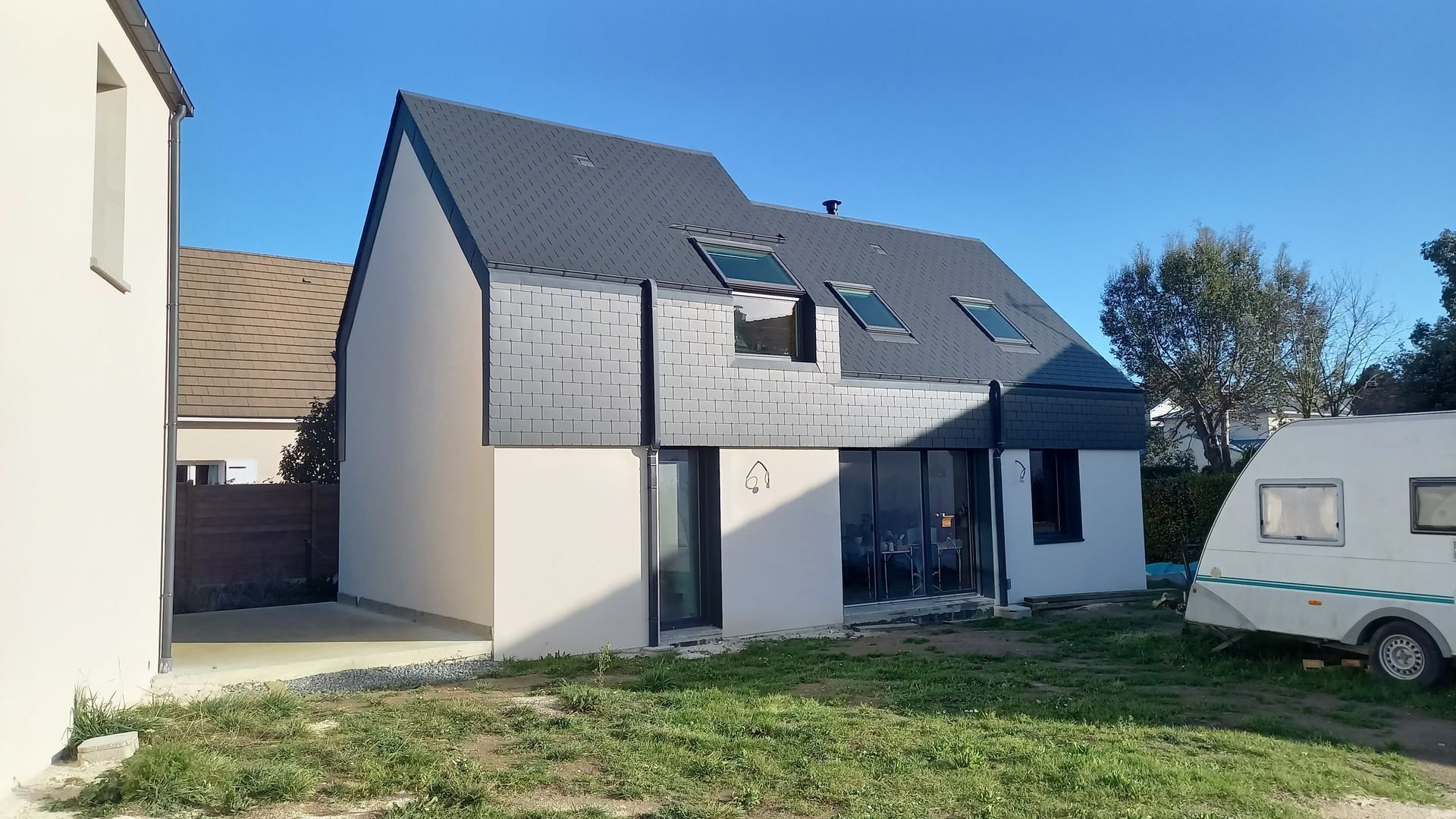Bardage : ardoise fibrociment et enduit