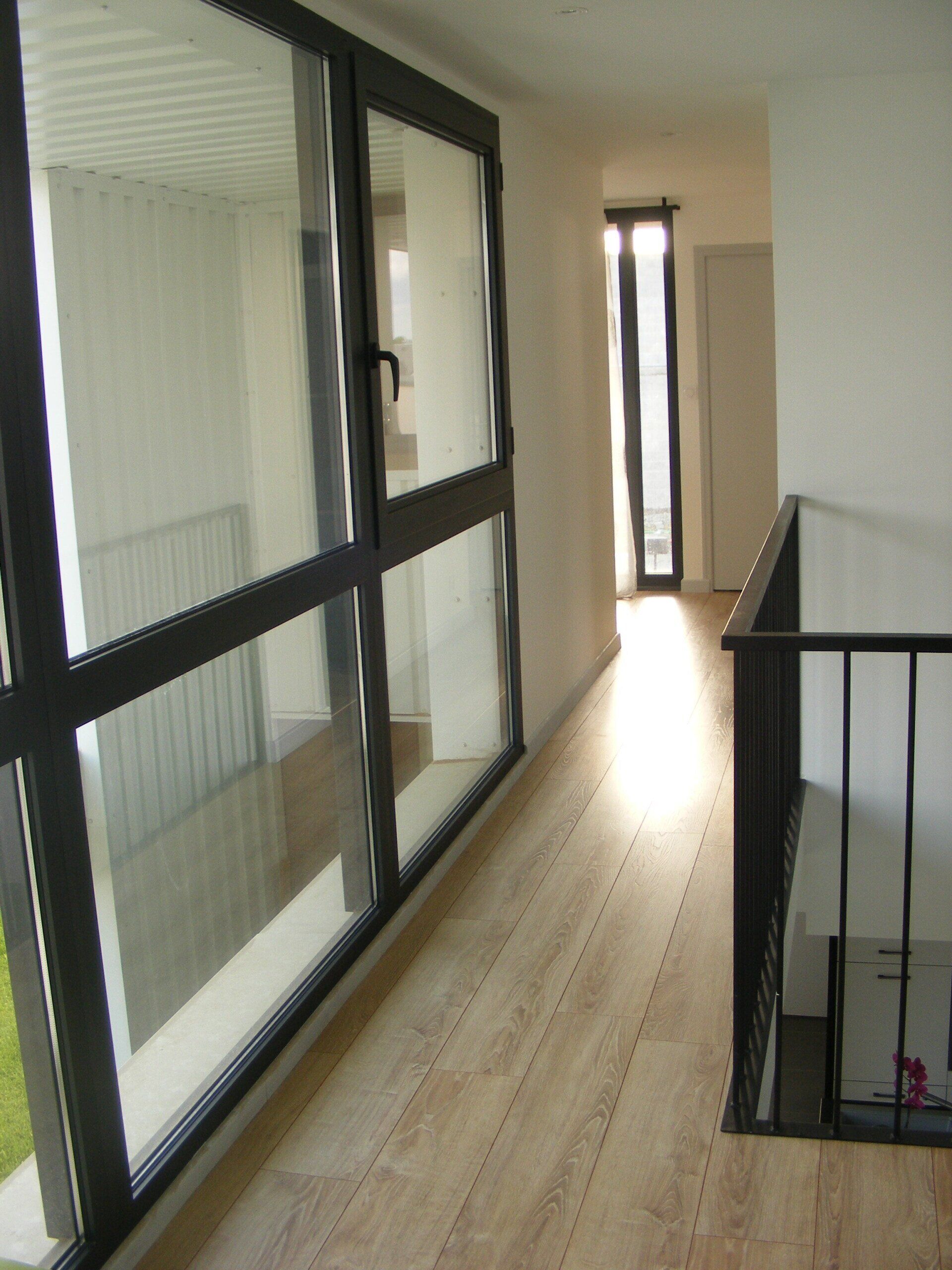 Pour des raisons de coût, nous sommes partis sur du parpaing enduit au rez-de-chaussée et du bardage métallique à l'étage, mais il était amusant de faire une inversion du traitement classique des maisons contemporaines, c'est-à-dire : du parpaing enduit BLANC et du bardage métallique GRIS.