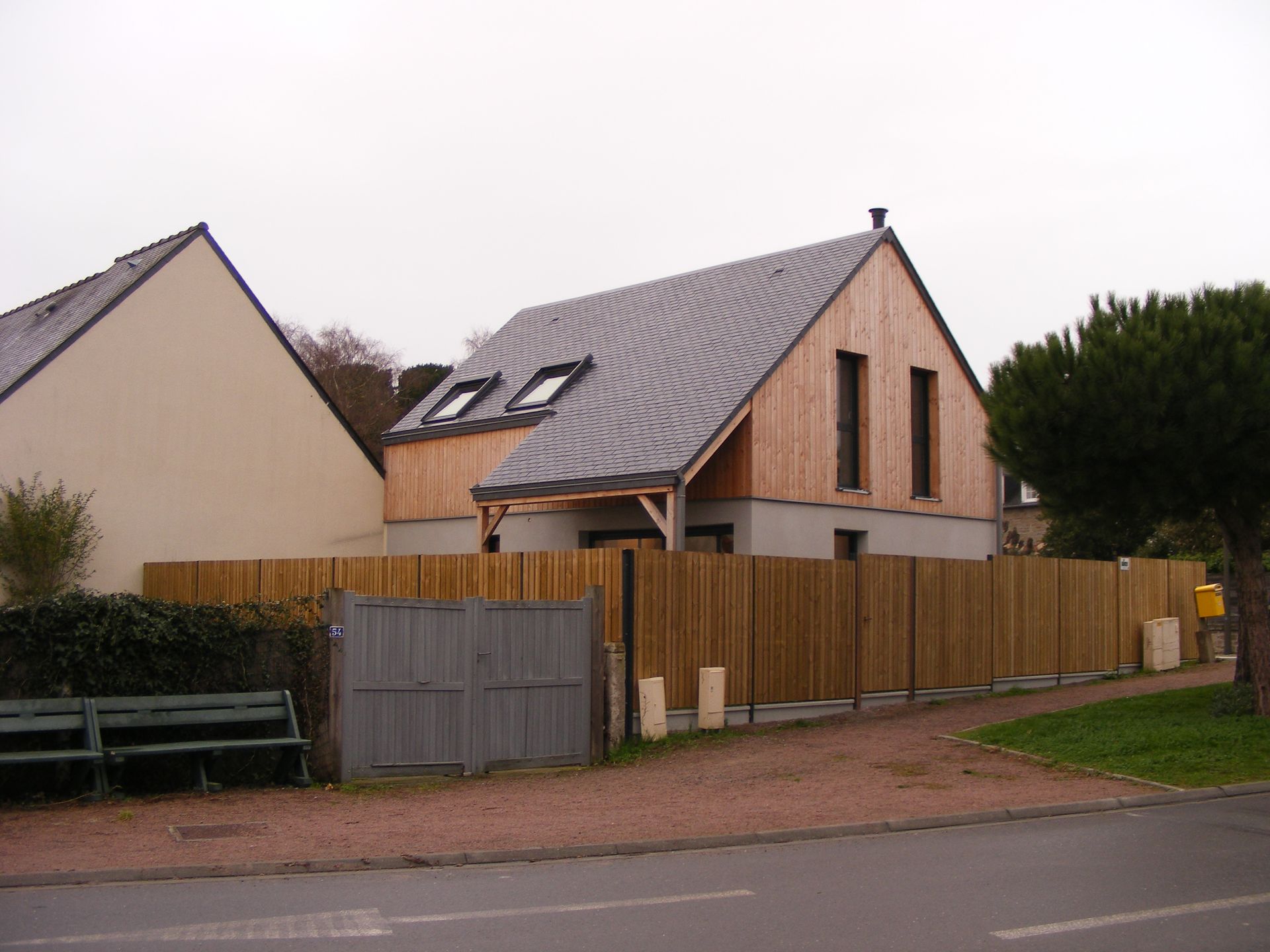 d’un nouveau projet dans son environnement. Ici, ce village est en grande partie traditionnel breton, avec des murs en pierre et des toitures en ardoise. De même, cette maison se situant à un carrefour sur un boulevard assez passant, il ne fallait donc pas en faire trop, selon la mairie. Nous avons donc essayé de reproduire ce schéma traditionnel tout en apportant une singularité des espaces