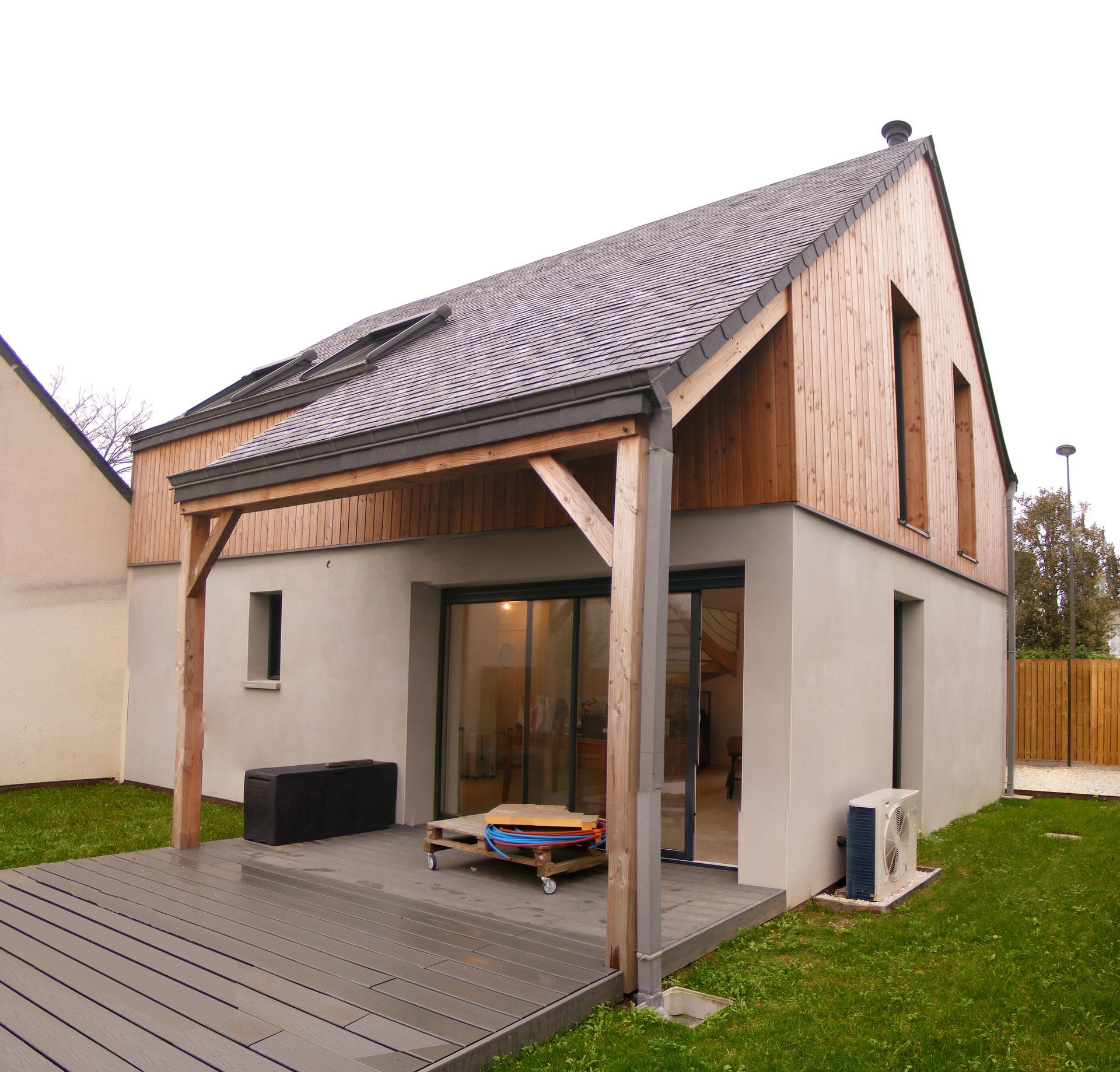 Bardage : Enduit et bois en pin Douglas