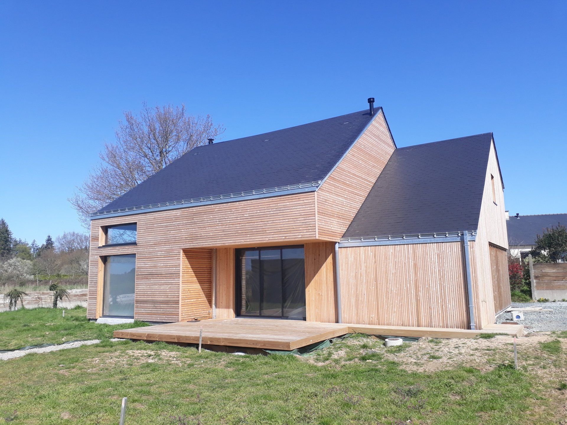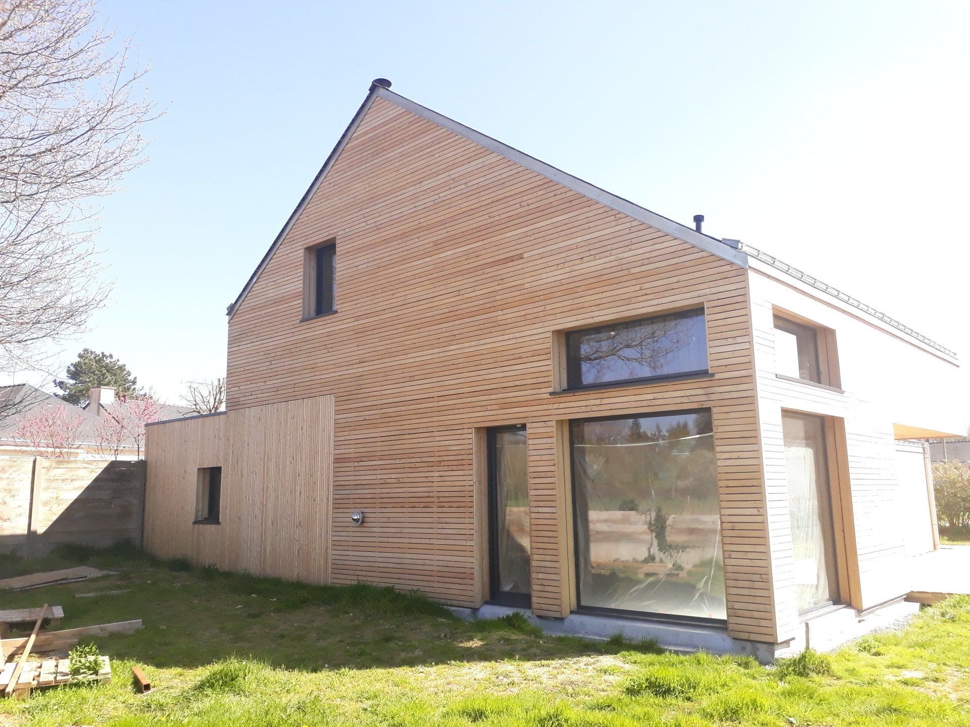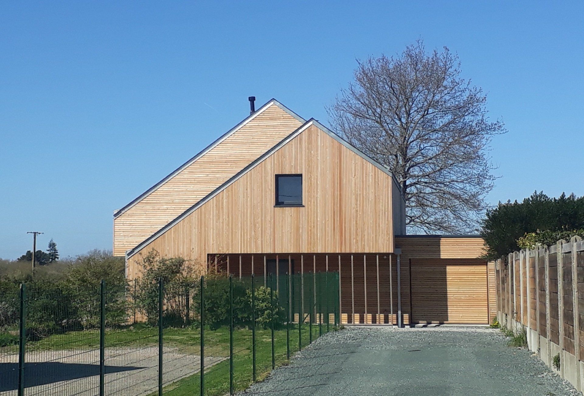 Pour une maison tout en bardage bois, ça peut vite être très lourd pour l’œil humain. Nous avons essayé de souligner le travail de volumétrie