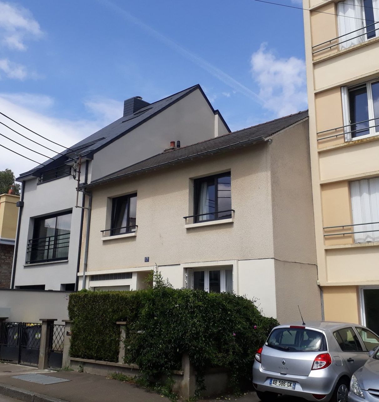 leur maison pour se faire un espace à eux, séparé des enfants. Pour ne pas empiéter sur le jardin qui possédait déjà une extension, nous avons opté pour une surélévation. Ce n'était plus un espace à eux mais carrément un étage à eux. La maison étant bordée par un immeuble d'un côté et une maison plus haute que la leur de l'autre, nous avons donc décidé de nous aligner