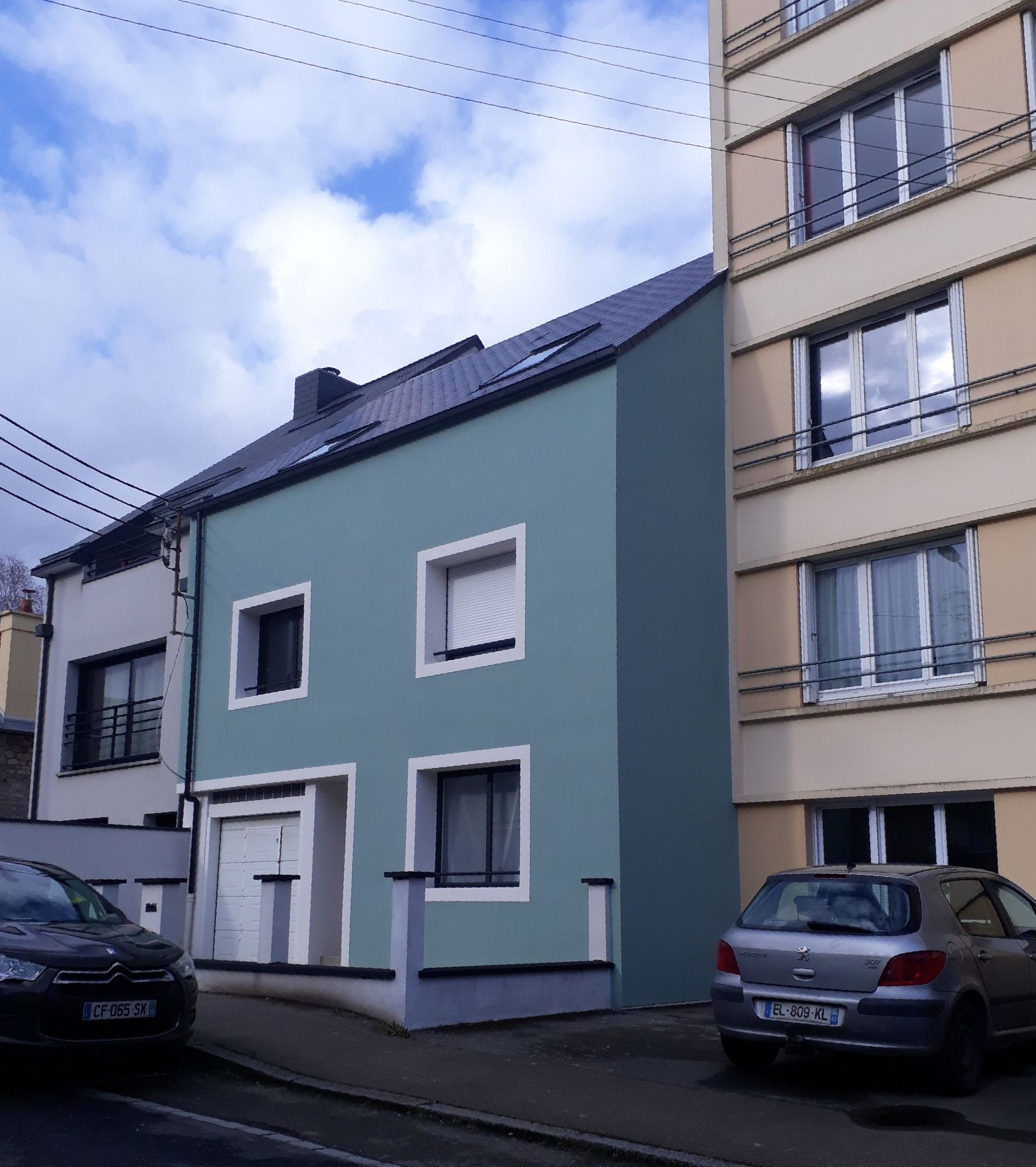 L'ITE remonte le long des murs ossature bois de la surélévation afin de ne pas voir de délimitation